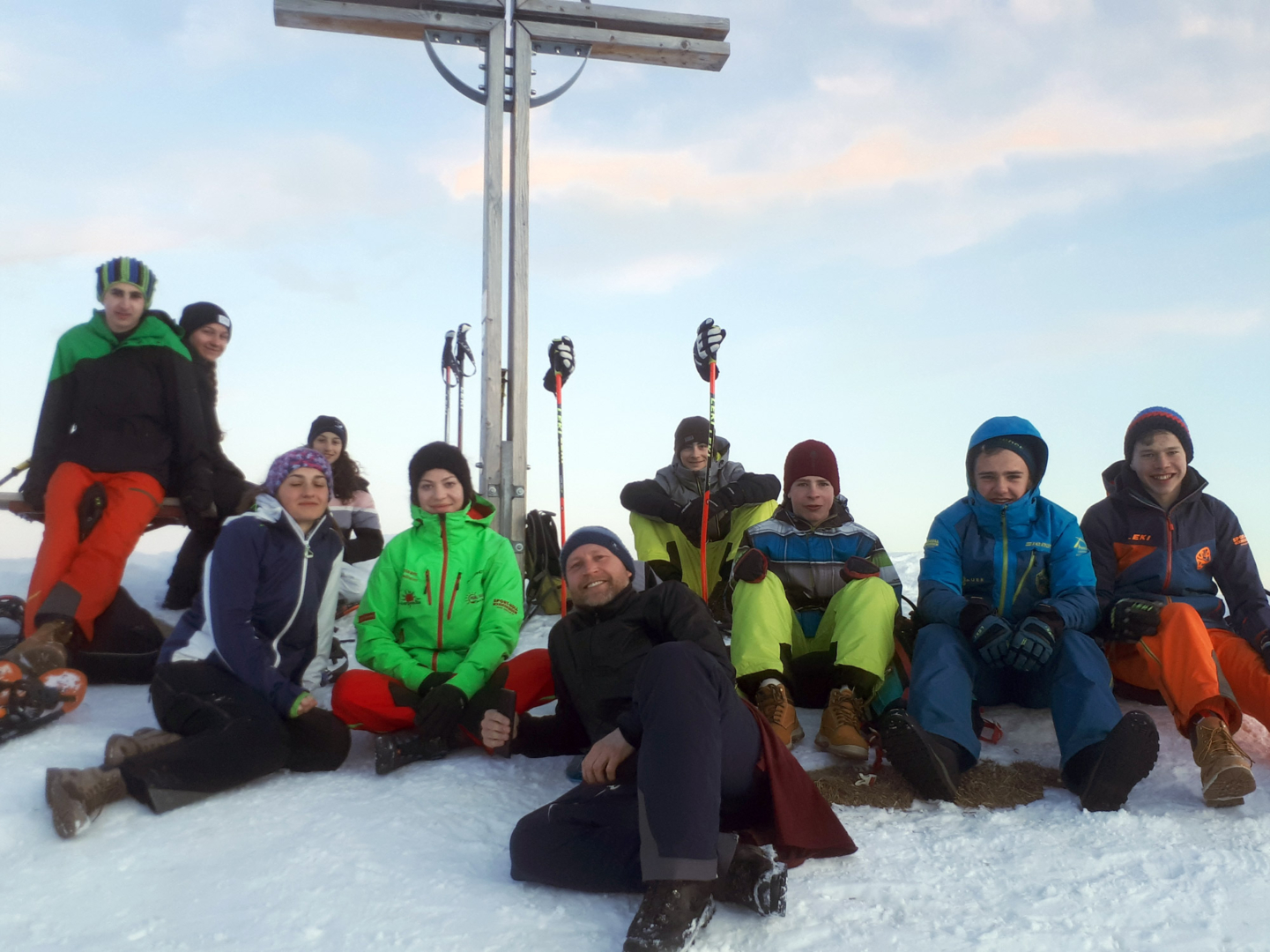 Aller Anfang ist schwer, so wurden die ersten Tage am hauseigenen Hang geübt. Vom Skistiefelanziehen übers Kurvenfahren bis hin zum Liften. Am dritten Tag teilten wir uns in zwei Gruppen auf, um ins nahegelegene Skigebiet zu fahren. Wir fuhren den halben Tag im etwas schwierigeren Skigebiet und den halben Tag am hauseigenen Übungshang. Am Mittwoch wanderten wir mit den Schneeschuhen noch vor dem Morgengrauen los, um dann mit den ersten Sonnenstrahlen den Gipfel zu erklimmen. Später veranstalteten wir noch ein spannendes Skirennen.