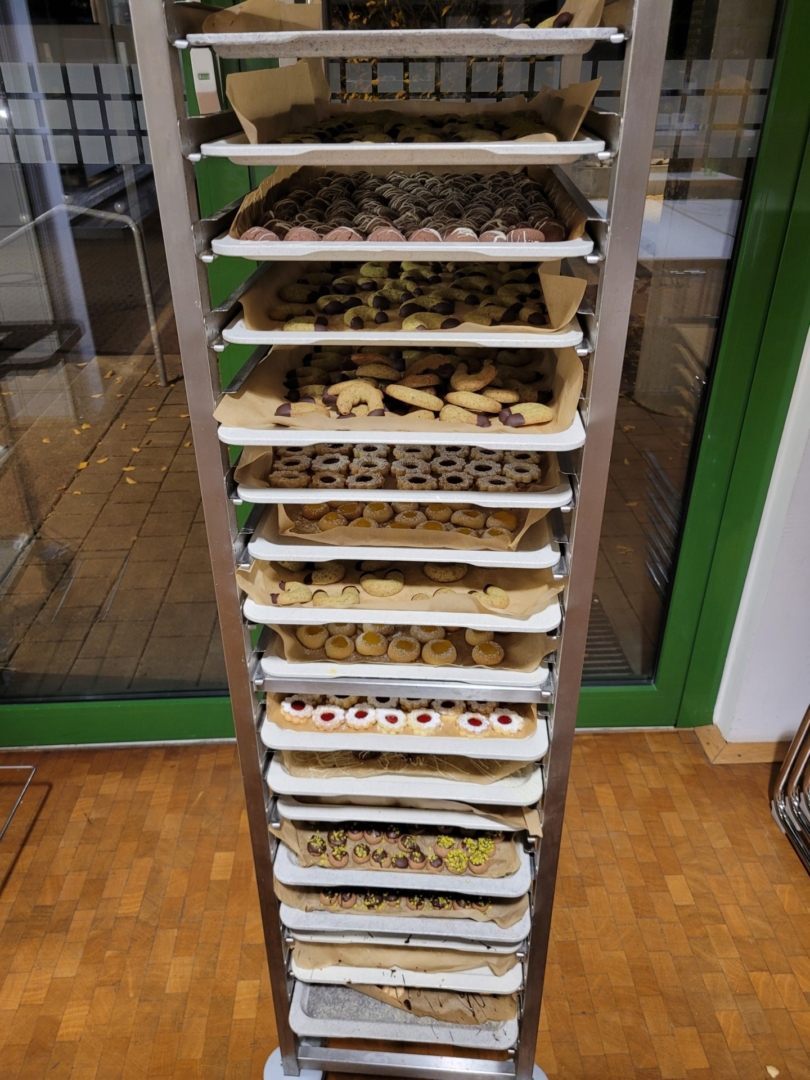 Am Freitagnachmittag durchzog die Mensa ein wohliger Weihnachtsduft nach Mandeln, Vanille und Schokolade. Zahlreiche Schülerinnen und Schüler buken mehrere Sorten Plätzchen für einen guten Zweck. Nachdem jedes Kind sich mit Plätzchen für zuhause eingedeckt hatte, wurden die anderen Gutsle schön verpackt auf dem Notzinger Weihnachtsmarkt verkauft, wo der Erlös der Plätzchen von 200€ dem Stuttgarter Verein KinderBerg International zugutekommt, der sich seit über 20 Jahren um notleidende Kinder und Frauen in einer abgelegenen Region Afghanistans kümmert.