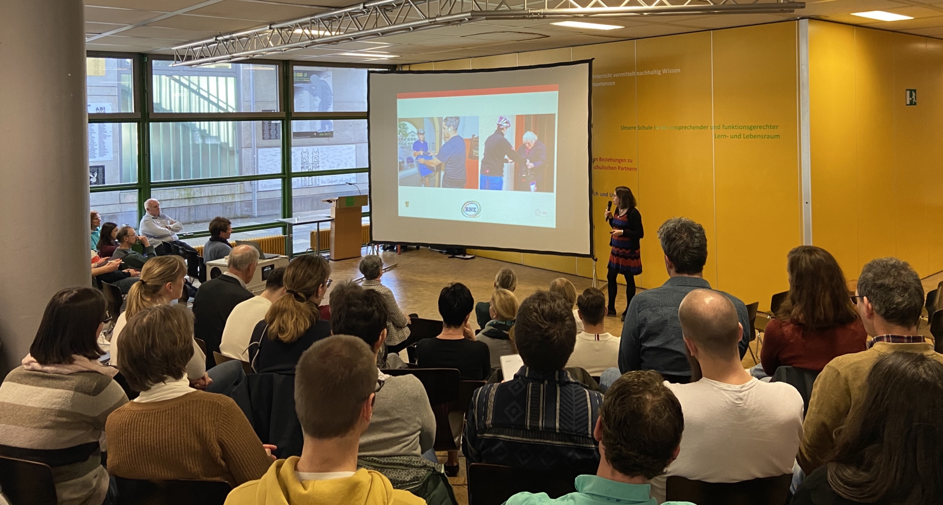 In der Arbeitsgruppe „Der Whole System Approach“ erarbeitete Frau Dreizler vom ZSL mit Lehrkräften, Eltern und Schülerinnen und Schülern, wie sich das Schlossgymnasium weiter in Richtung Nachhaltigkeit entwickeln kann. Vornehmlich ging es um die Bereiche „Unterricht und Lernsettings“, „Schulgebäude und Campus“, „Organisation und Fortbildung“, „Externe Partner und Netzwerke“. Dabei wurden auch schon einige ganz konkrete Ideen für die Entwicklung gesammelt.