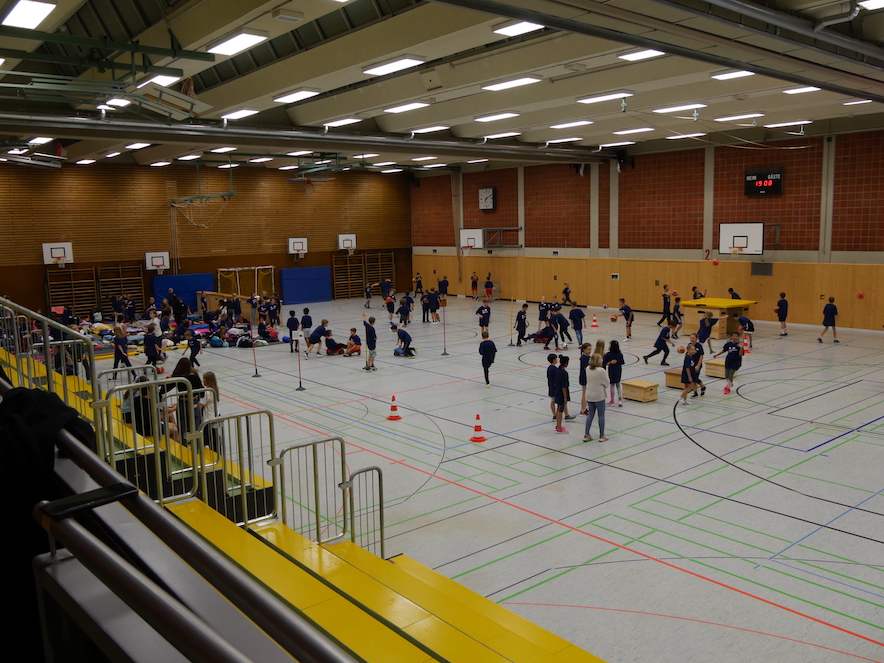 An verschiedenen Stationen konnten alle Klassen zeigen, was in ihnen steckt und gefragt waren sowohl Taktik, Ballbeherrschung, Schnelligkeit als auch feinmotorisches Geschick. Kein Wunder, dass nach all der Bewegung die frisch angelieferte Pizza besonders gut schmeckte! Die sich anschließende gemeinsame Tanzaktion brachte alle wieder auf die Beine und sorgte für beste Laune. Beim Kinofilm des Abends durfte dann viel gelacht werden und im Anschluss daran war es Zeit für das Matratzenlager, welches sich die Kinder schon vorab ihren eigenen Vorstellungen von einem passenden Nachtlager entsprechend eingerichtet hatten. Erst nach Mitternacht verstummten auch die letzten Gespräche und es kehrte Ruhe ein.