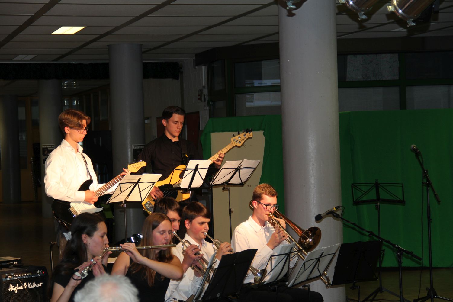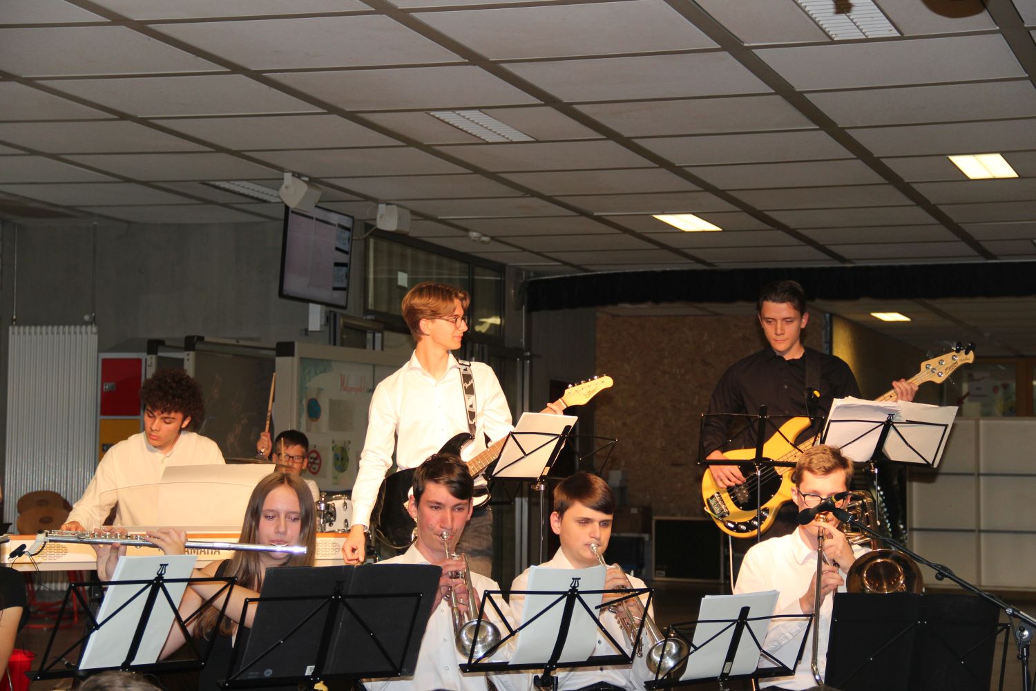 Die Big Band spielte dann ihr ganzes Können mit von Herrn Scheytt arrangierten und passend ausgewählten Stücken aus. Sowohl die Soli als auch die Tuttiphasen begeisterten das Publikum. Das sichere, souveräne Spiel aller Bandmitglieder war beeindruckend und auch die Stückauswahl war breit aufgestellt und ermöglichte den jungen Musiker*innen, ihr Talent und ihre hohe Virtuosität auf ihren Instrumenten zu zeigen.