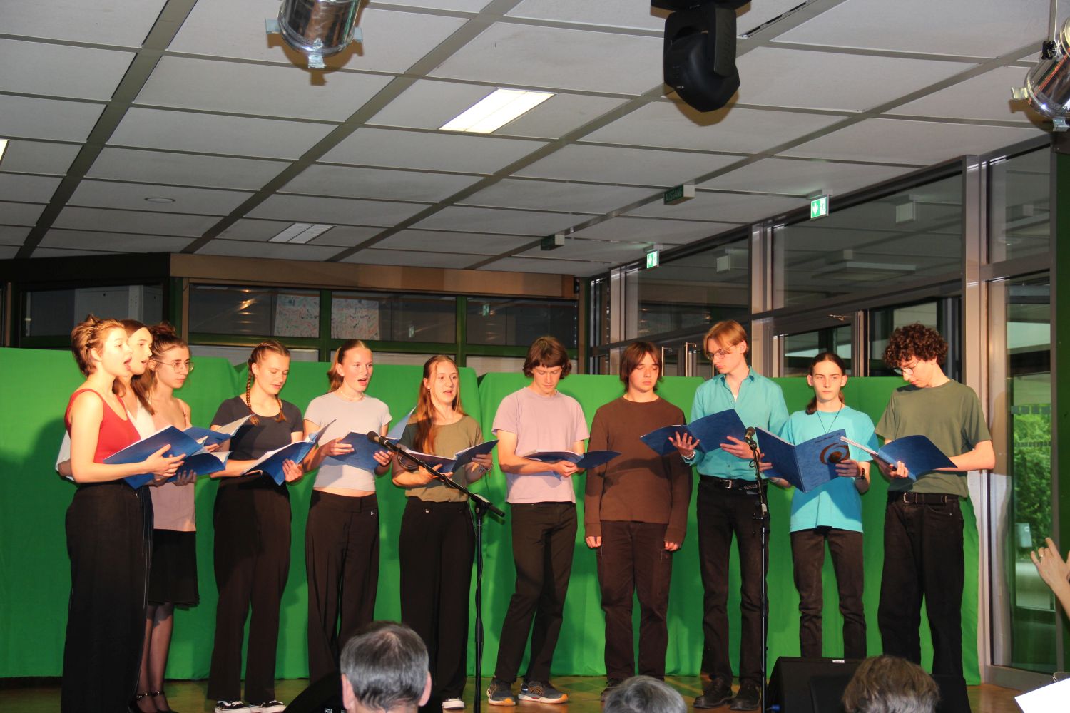 Eine ebenso abwechslungsreiche Auswahl an Liedern rund um das Thema „Traum und Liebe“ ließ der Mittel- und Oberstufenchor unter der Leitung von Frau Steinhübl folgen. Auch hier wurden sowohl ältere Songs wie zum Beispiel „Every little thing she does“ von The Police als auch House Klassiker wie „Wake me up“ von Avicii zu Gehör gebracht und vom Publikum mit Fußwippen oder Mitsummen begleitet. Die von Frau Steinhübl neu arrangierten und für den Chor angepassten Stücke wurden mit viel Gefühl interpretiert und auch rhythmisch und stimmlich anspruchsvolle Passagen souverän gemeistert.