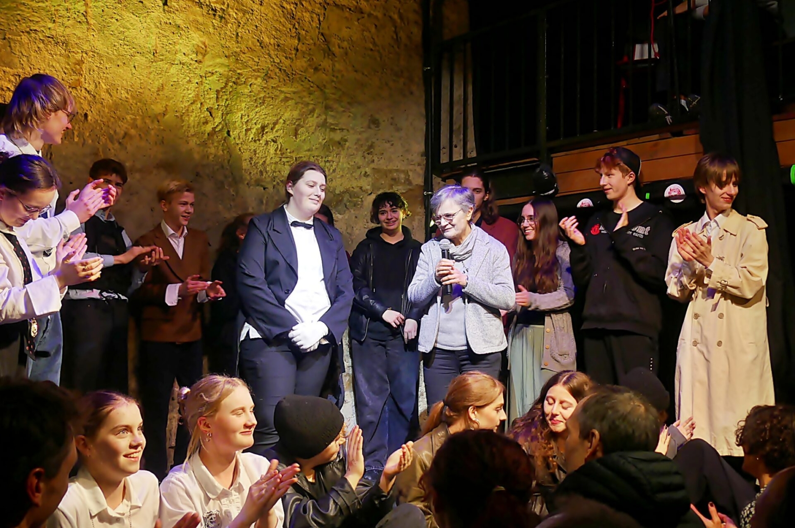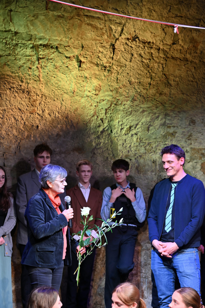 Ein herzliches Dankeschön an Sebastian Gekeler und Henriette Kirchner als Leitende der Oberstufen-Theater-AG, sowie allen Schauspielenden, den Schülerinnen der Turn-AG unter Leitung von Frau Burkhardt, den vielen helfenden Händen und dem zahlreich erschienenen Publikum für den verdienten lange anhaltenden Applaus.