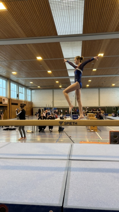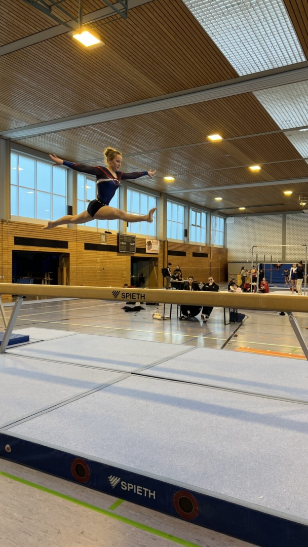 Am Dienstag, den 24.02.2026 war es soweit: Der U23-Wettkampf stand vor der Tür. Nach der gemeinsamen Autofahrt kamen wir bei strömendem Regen in der Wettkampfhalle in Esslingen-Berkheim an. Anders als das Wetter war die Stimmung sowohl bei den Turnerinnen als auch bei den Betreuerinnen Frau Burkhardt und Frau Holzwarth sehr gut.